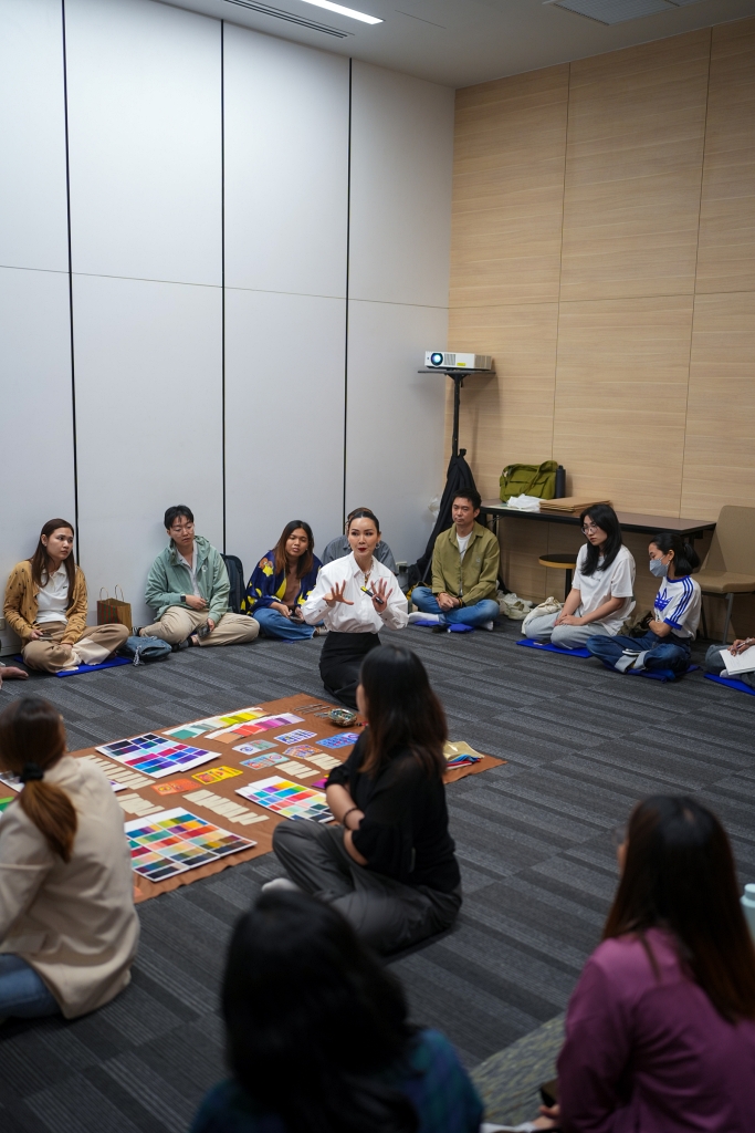 รู้จักพลังของสี แบบ Inside out ผ่านการเรียนรู้การเชื่อมโยงสีจากจักระภายใน และ จิตวิทยาสี (Personal Color) จากภายนอก เพื่อสร้างความตระหนักรู้ โดยเปิดโอกาสให้ผู้เข้าร่วมได้แชร์ประสบการณ์ พร้อมอุปกรณ์สีให้ทดลองค้นหาสีที่สะท้อนตัวตนของตนเอง เพื่อเข้าใจและเลือกใช้สีได้อย่างมีความหมายในชีวิตประจำวัน